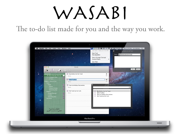 With Wasabi for Macintosh, you can create, manage, and organize your to-dos directly on your desktop. Wasabi has two interfaces for managing your to-dos: