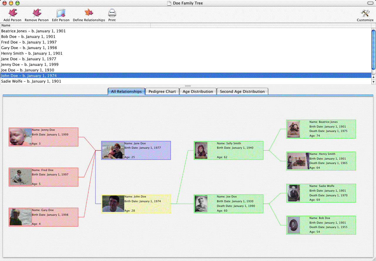 TreeTracker enables you to link people together to show their relationships, and thus, build your family tree.