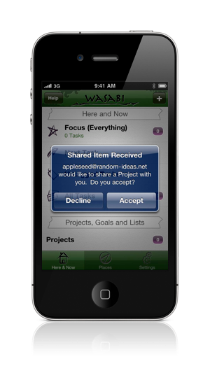 You might even be one of those folks who has so much to do, you can't do it all yourself. Well, with Wasabi you can delegate, delegate, delegate! Take any of your tasks or projects and share it with someone else to assign it to them. It automatically shows up in their copy of Wasabi and any edits or changes they make to it magically propagate back to you!